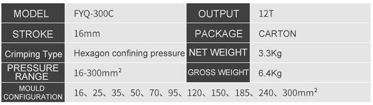 Sıxım diapazonu | 16-300mm² | Ümumi çəki | 6,4 kq |