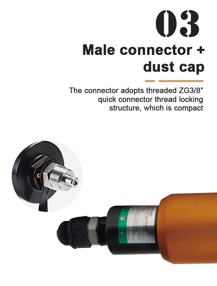 - Mandforningsstift + støvhat. Forbindelsen anvender gevindet ZG3/8' hurtigkobling med gevindlåsning, som er kompakt