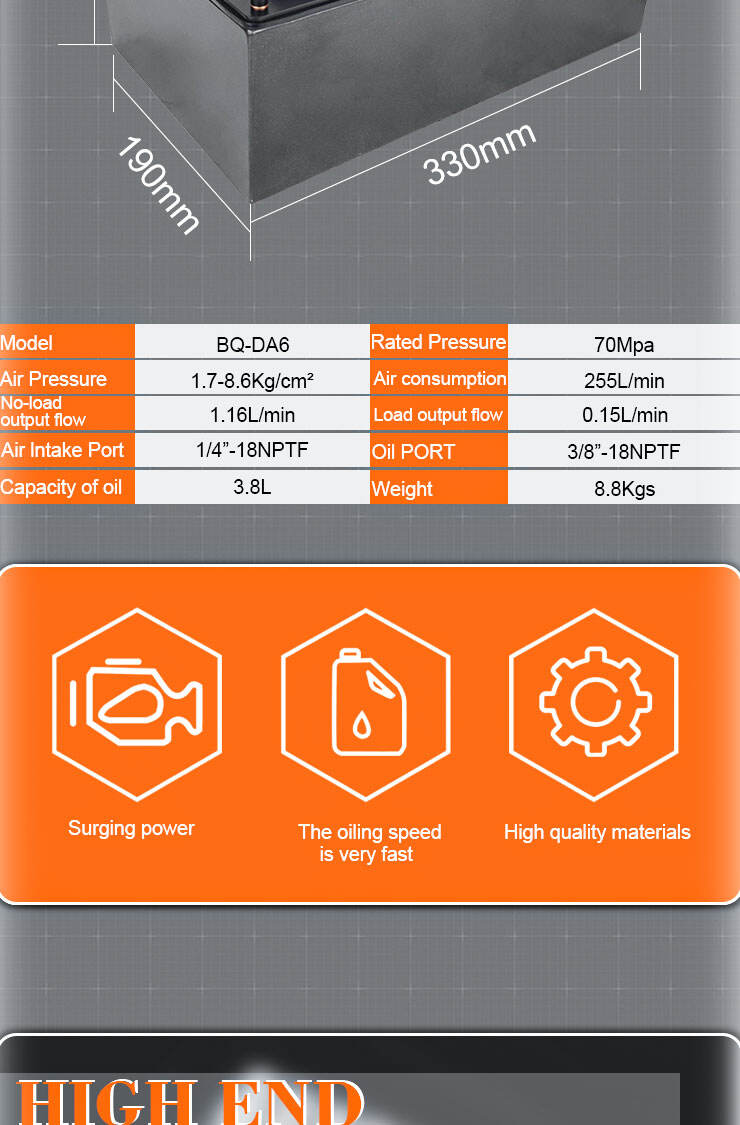Model | BQ-DA6 | Nærmest tryk | 70Mpa |