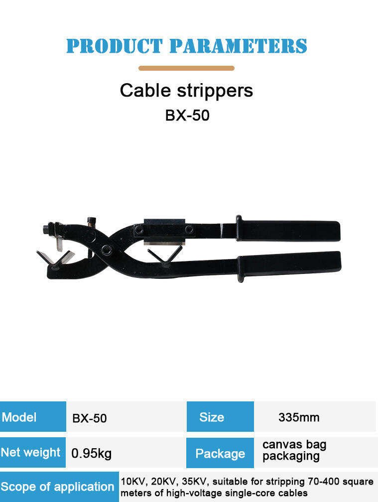 Anvendelsesområde | 10 kV, 20 kV, 35 kV, egnet til afisolering af 70-400 kvadratmeter højspændingsenkeltkernede kabler |