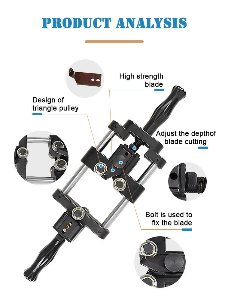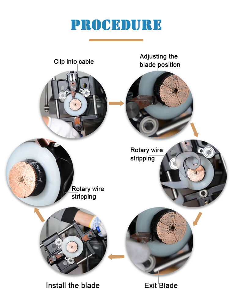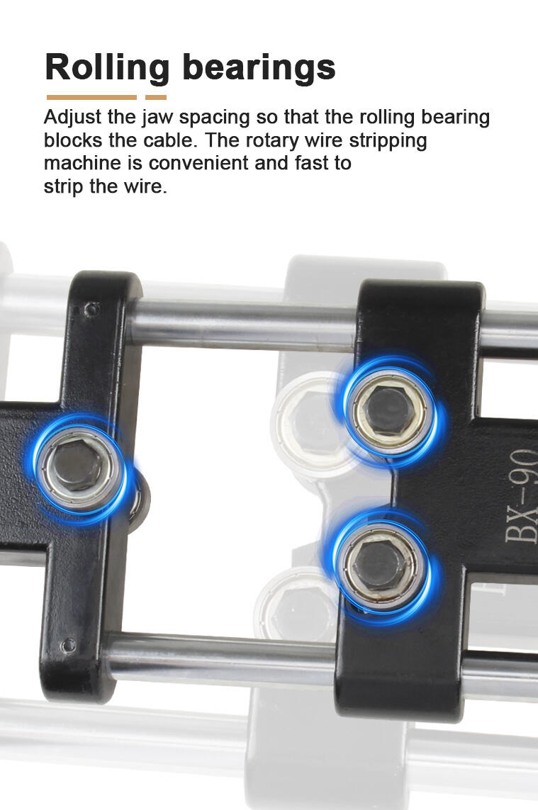 - Rullelejer Juster afstanden mellem kæber, så rullelejerne blokerer kablet. Maskinen til roterende aderfri er nem og hurtig at frise ledningen med.