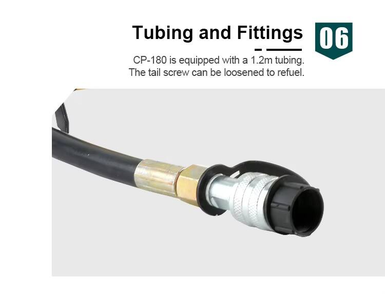 - Rør og beslag CP-180 er udstyret med et 1,2 m rørSkruen i enden kan løsnes for at påfyldning.