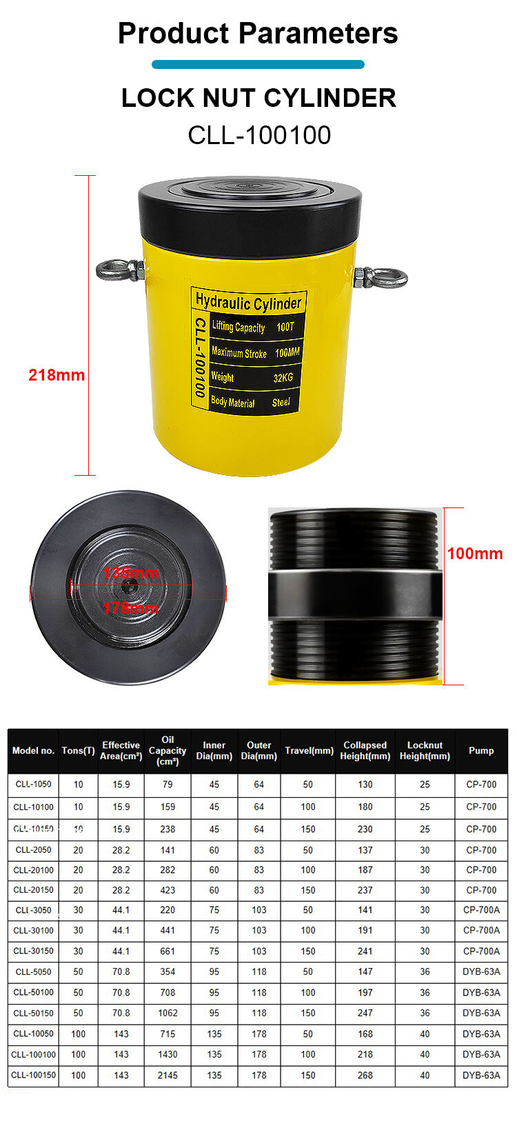 CLL-100100 CLL 700 Bar/ 10000 Psi Låsenøgle Hydraulikcylinder Jack