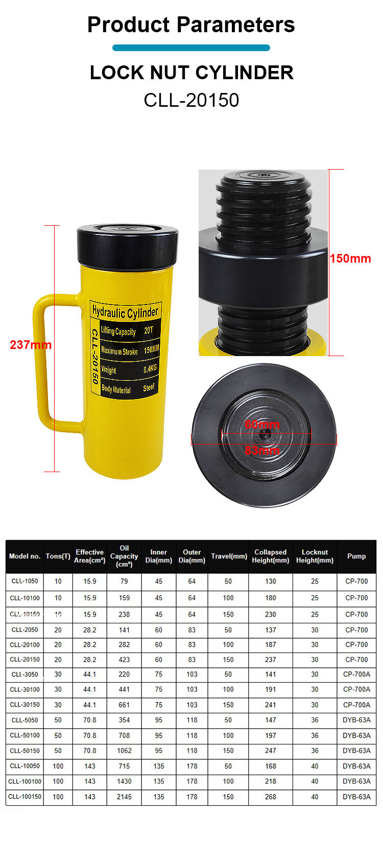 CLL-20150 700 Bar enkeltvirkende 20ton låsemøtrikcylindre