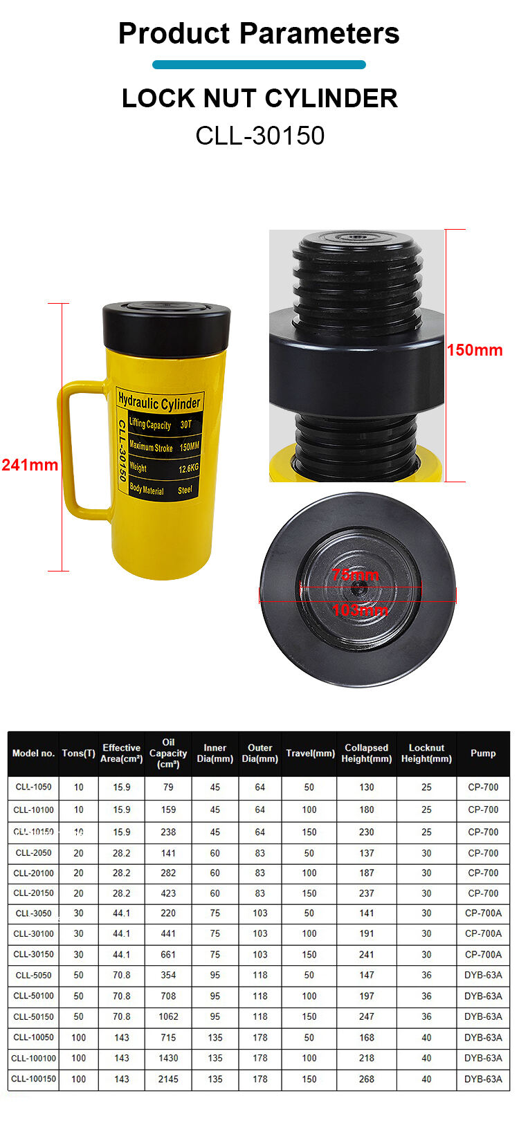CLL-30150 Enkeltvirkende Lav Profil Låsemøtrik 30 Ton Hydraulikcylinder