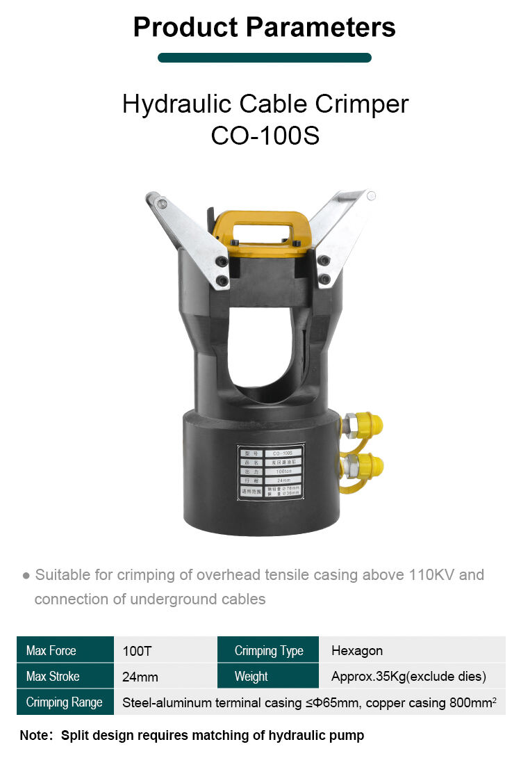- Dobbeltvirkende cylinder 100T kraftfuld cylinder Dobbeltvirkende design både crimpning og afløsning er hurtig.