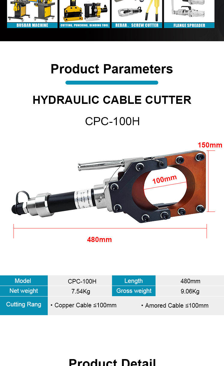 CPC-100H 12 tons hydraulisk kobber- og aluminiumspanserkabelskærer 100 mm