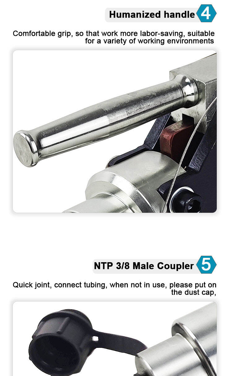 - NTP 3/8 hankønskobling Hurtigforbindelse, tilslut rørledning, ved ikke brug, skal støvbeskyttelseshætte monteres