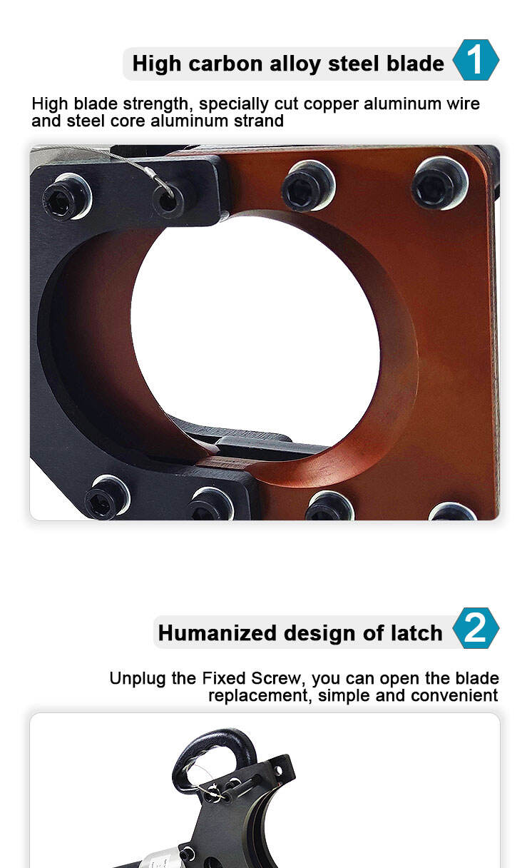 - Højtfokkeret legeret stålskæreblad, Højt skærebladstyrke, specielt til skæring af kobber-aluminiumstråd og stålkerneståltråd