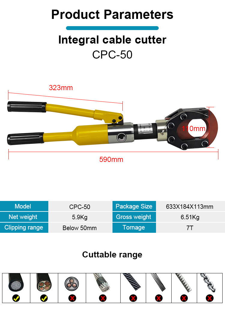 CPC-50 Hydraulisk kableskærer til Cu Al-armoreret kabel op til 50mm