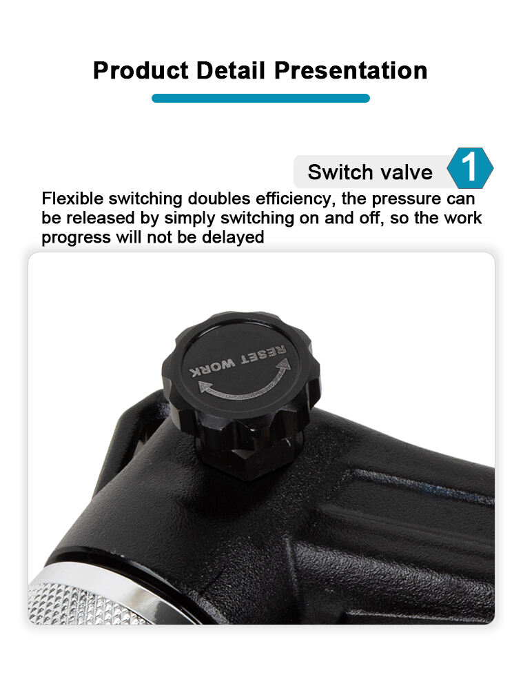 - Omskiftningsventil Fleksibel omskiftning fordobler effektiviteten, trykket kan frigives ved blot at tænde og slukke, så arbejdsgangene ikke forsinkes