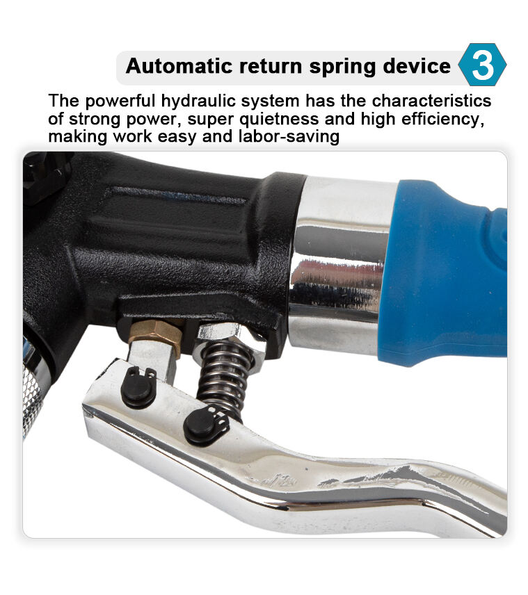 - Automatisk returfjederanordning Det kraftfulde hydrauliske system har kendetegnene stærk kraft, ekstrem stillehed og høj effektivitet, hvilket gør arbejdet nemt og mindre anstrengende