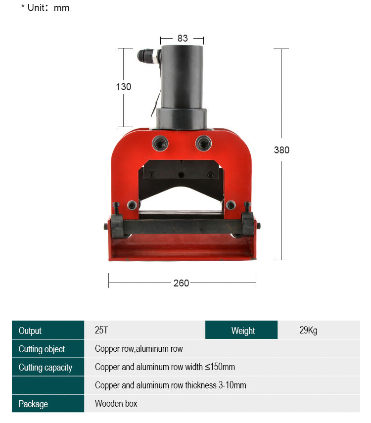 Skærekapacitet | Kobber- og aluminiumsbarrbredde ≤150 mm | ||