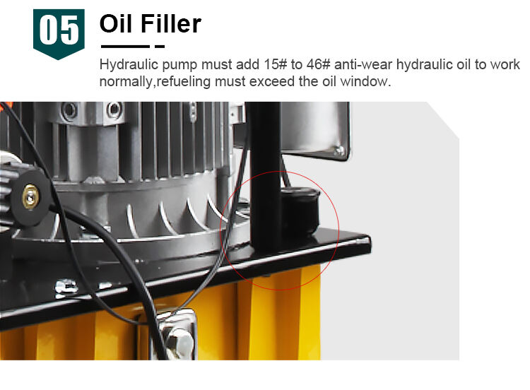 - Oliepåfyldning Hydraulikpumpe skal tilføje 15# til 46# slidstærk hydraulikolie for at fungere normalt. Oliepåfyldning skal overstige olietabet.