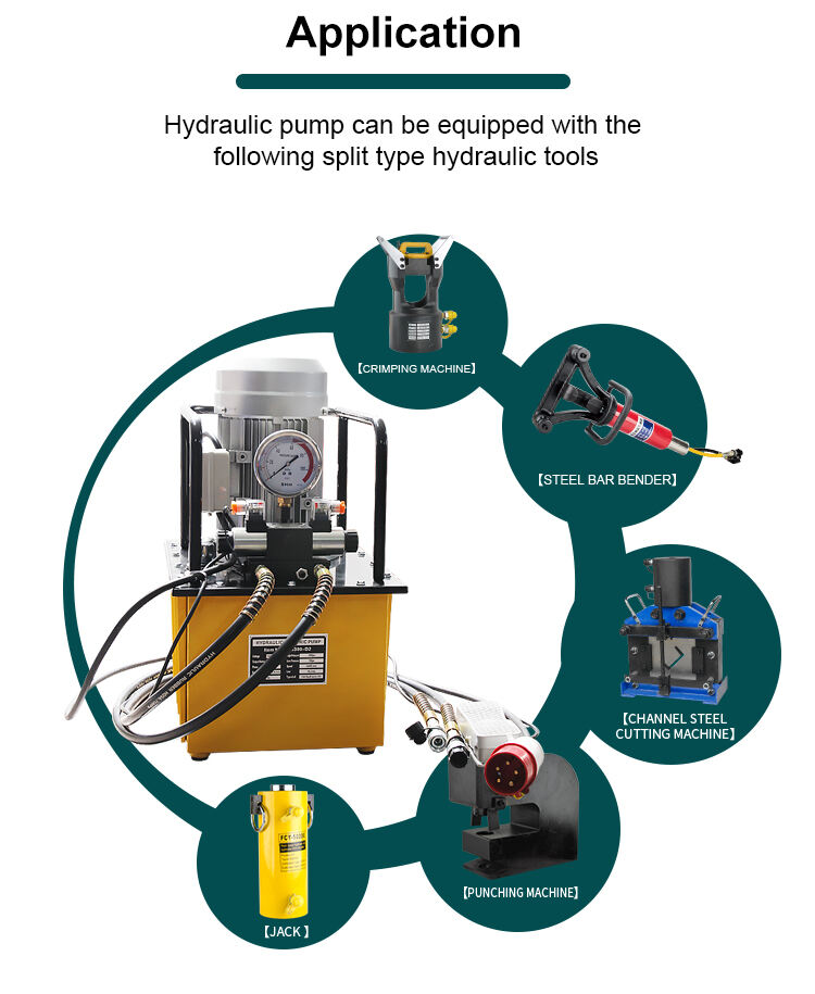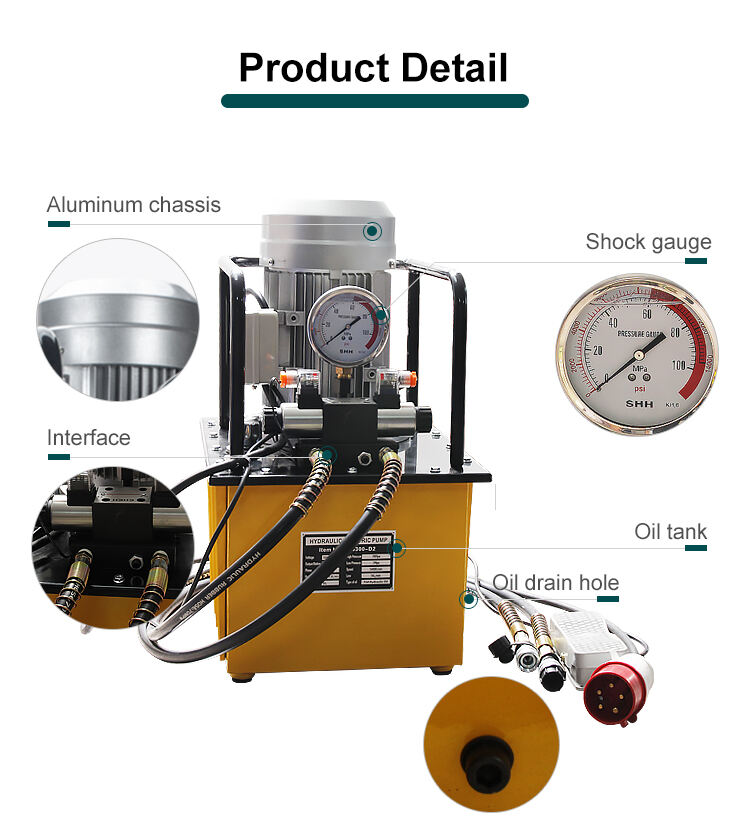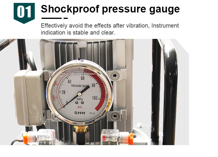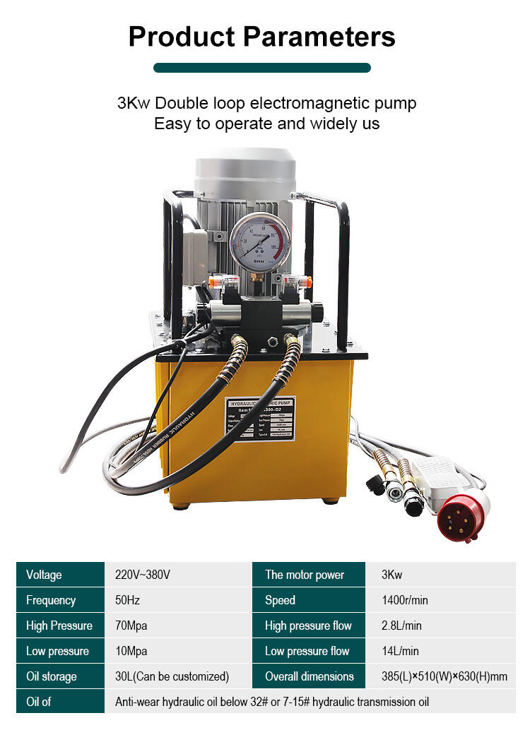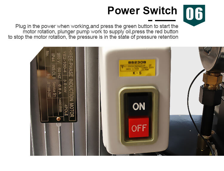 - Strømforsyning Tilkobling af strøm ved arbejde, og tryk på den grønne knap for at starte motorens rotation, plungerpumpe arbejder for at levere olie, tryk på den røde knap for at stoppe motorens rotation, trykket er i en tilstand af trykopretholdelse