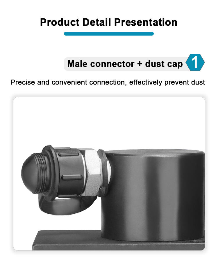 - Hankontakt + støvbeskyttelsesdæksel Nøjagtig og nem tilslutning, effektiv beskyttelse mod støv