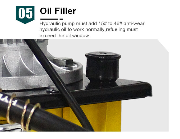 - Oliepåfyldning Hydraulikpumpe skal tilføje 15# til 46# slidstærk hydraulikolie for at fungere normalt. Oliepåfyldning skal overstige olietabet.