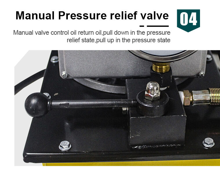 - Manuel trykafbøringsventil Manuel ventilkontrol olieafledningsolie, træk ned i trykafbøringsstillingen, træk op i trykstillingen