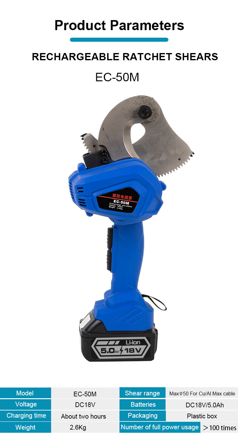 EC-50M Batteridrevet elektrisk ratchet-kabelskærer til pansret kabel ACSR