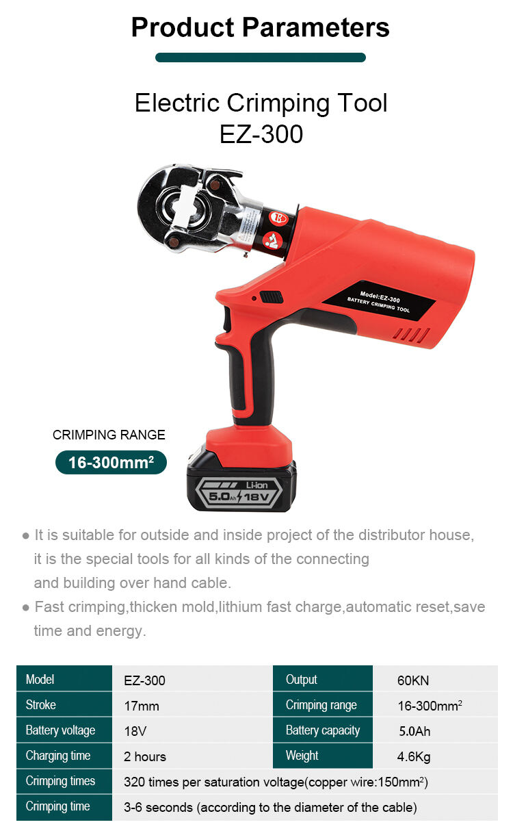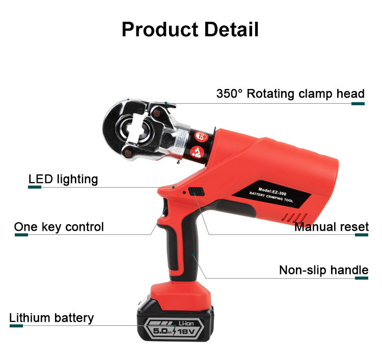 EZ-300 Batterikabelklemme Crimpværktøj, Batteridrevet Kobberpresseværktøj