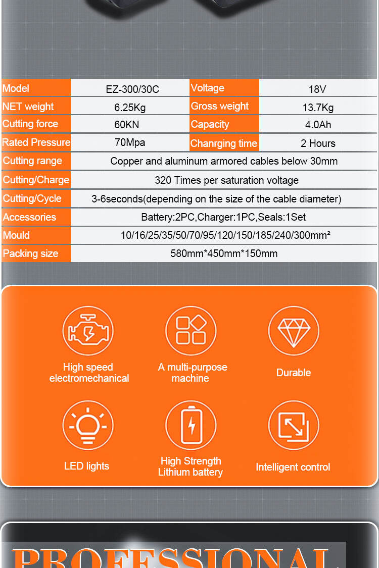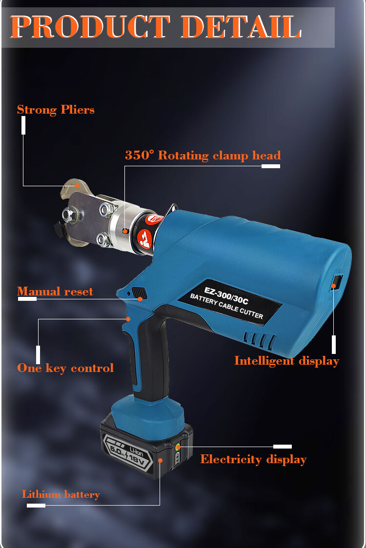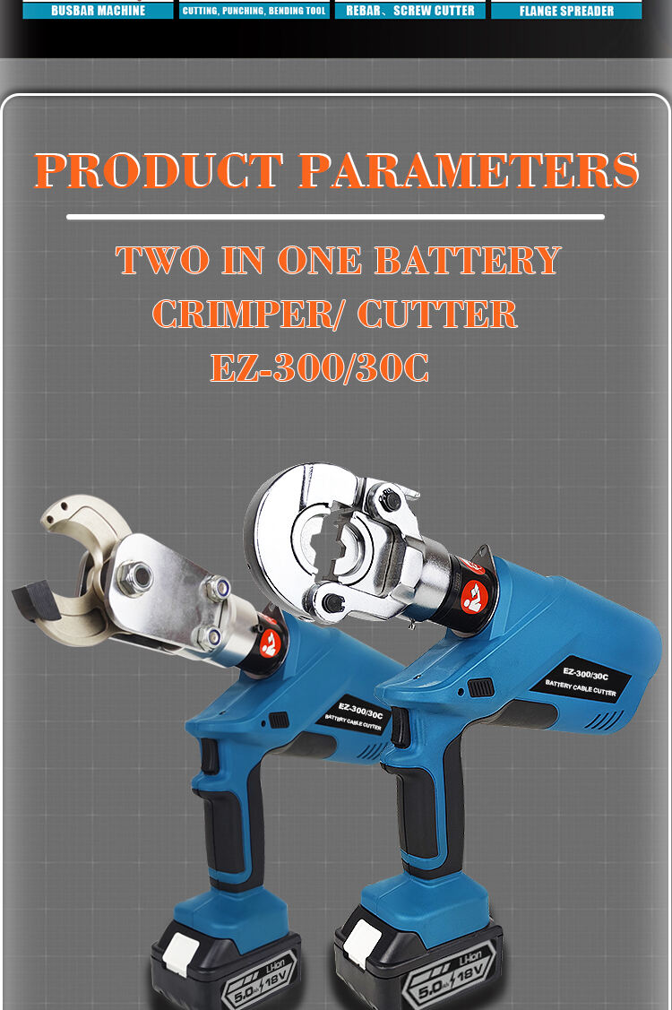 EZ-300/30C Skærecrimponing 2 i 1 Batteri Elektrisk Drevet Hydraulisk Værktøj 30 mm Kabelskærer