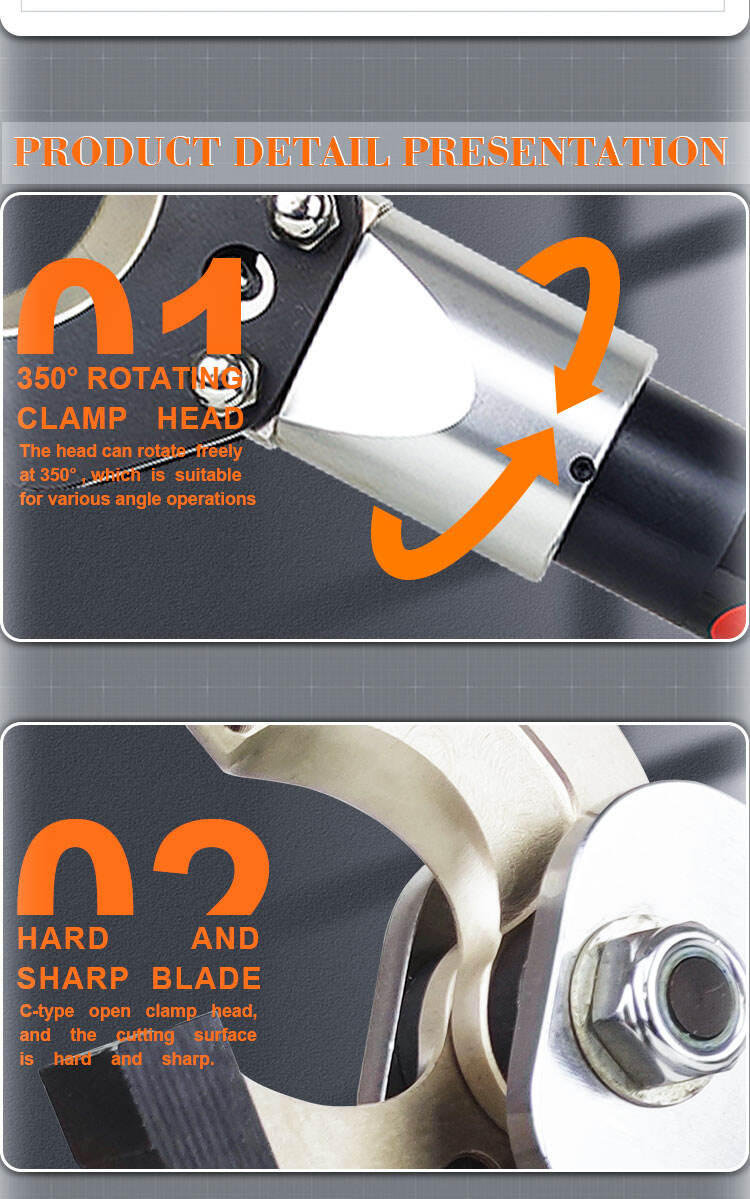 - 350° ROTERENDE KÆP Hovedet kan rotere frit 350°, hvilket er egnet til forskellige vinkleoperationer