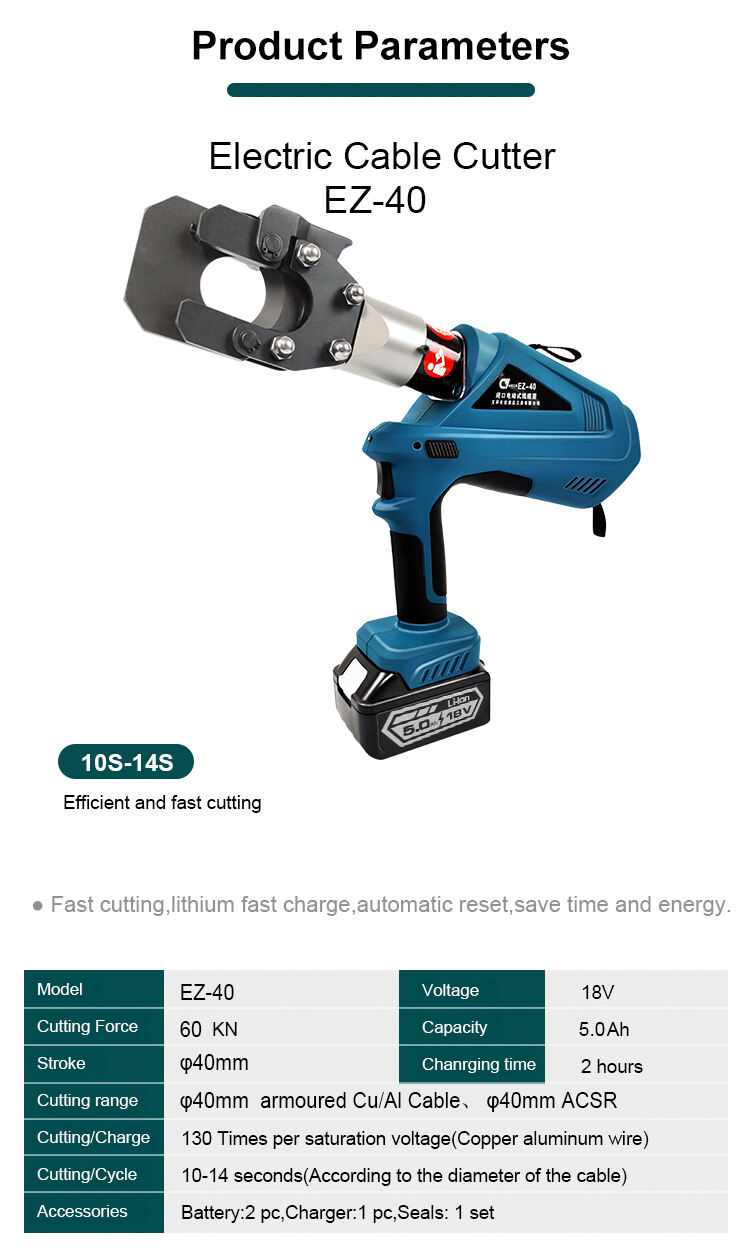 Skæreområde | φ40mm armoreret Cu/Al kabel, φ40mm ACSR | ||