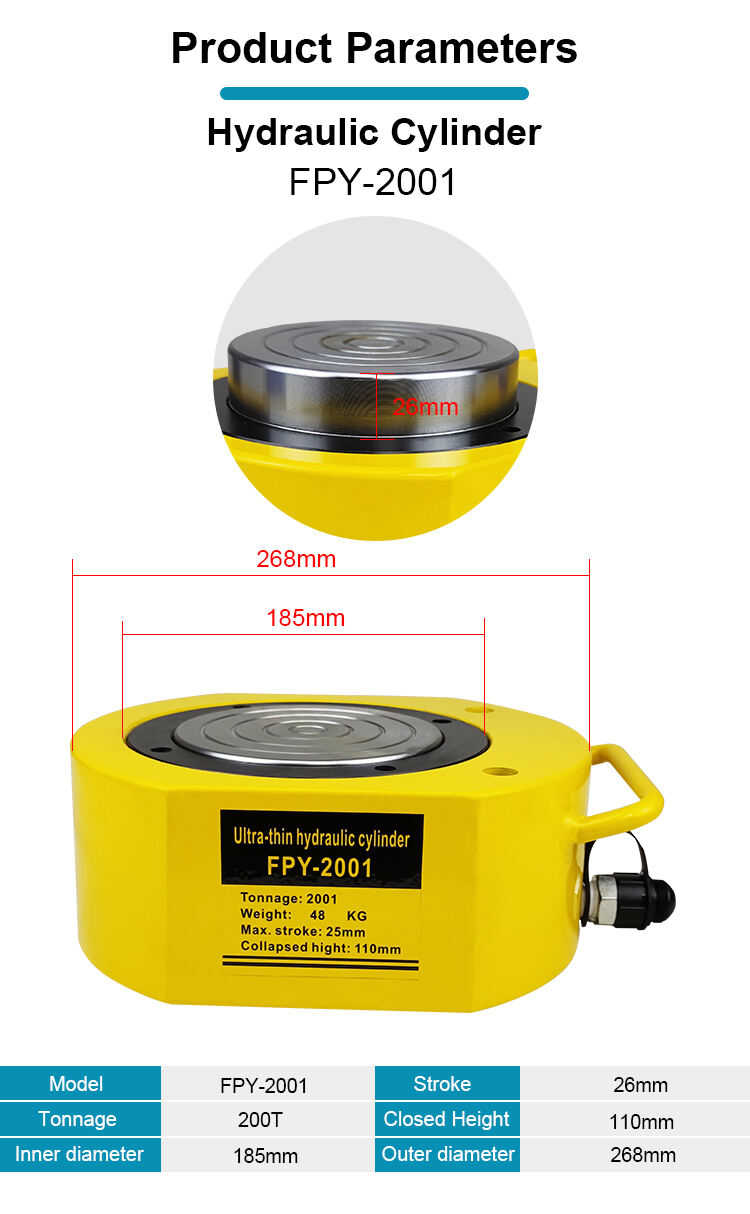 FPY-2001 200Ton Enkeltvirkende hydrauliske cylinderjacks Premium produktkategori