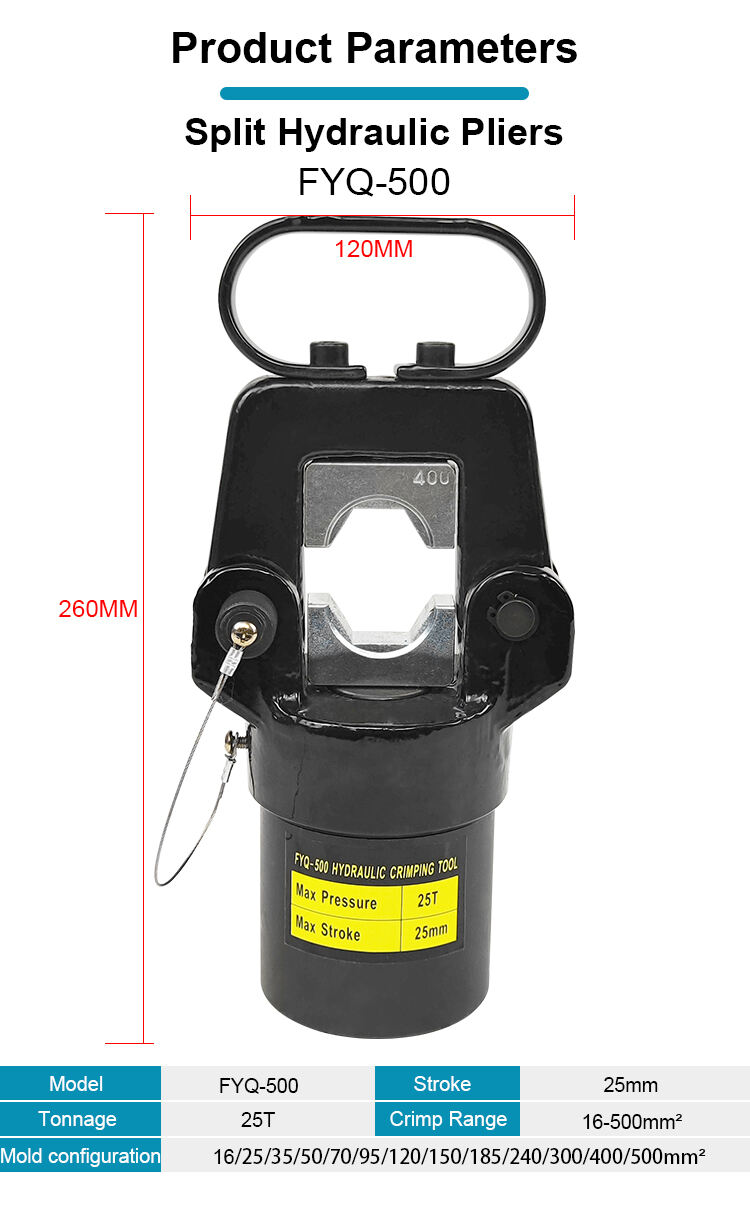 FYQ-500 Delt enhed hydraulisk tang Krimpområde 50-500mm