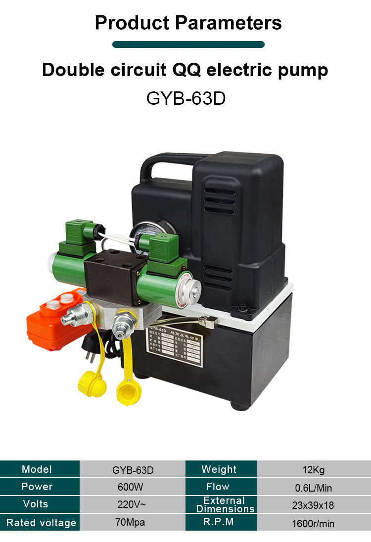 GYB-63D Bærbar Elpumpe Dobbeltvirkende med 700 Bar Højtryk til Industrielle Anvendelser