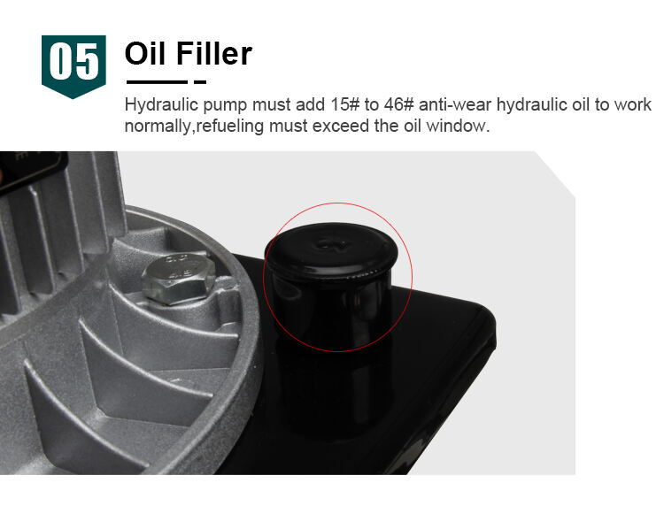 - Oliepåfyldning Hydraulikpumpe skal tilføje 15# til 46# slidstærk hydraulikolie for at fungere normalt. Oliepåfyldning skal overstige olietabet.