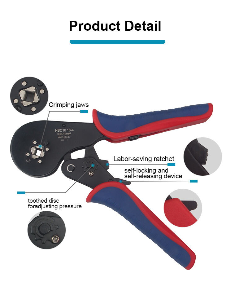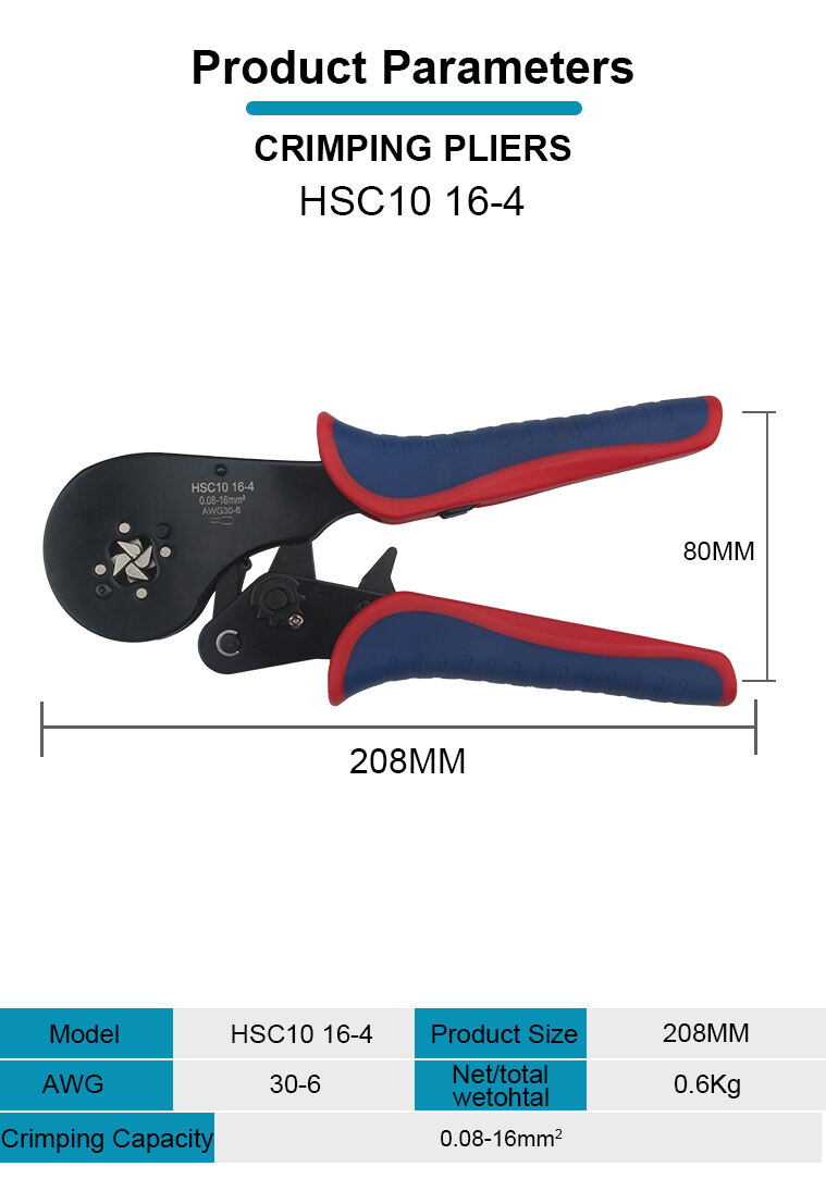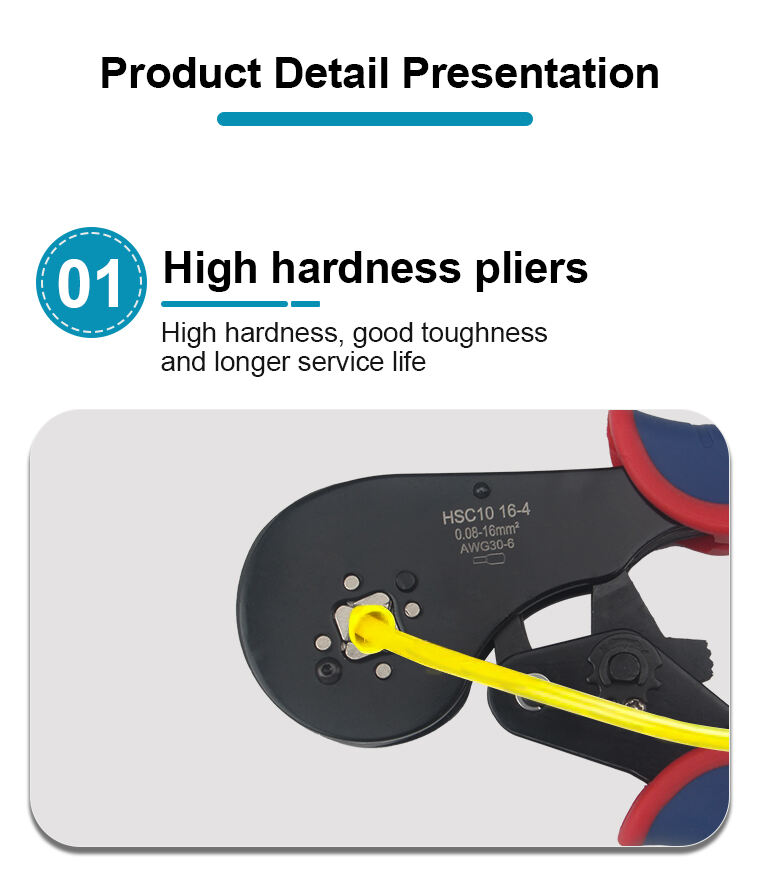 HSC10 16-4A 0,08-16mm² 26-5AWG Håndkrimptang Krimpværktøj til endehylser Forbindelsesstift Præcisionsklemmer til elektriske ledninger