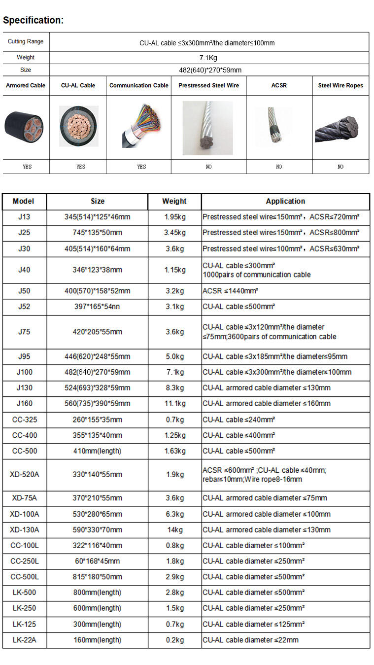 J100 Dia.100mm Kobber/aluminiumsbevæget kabelskærer