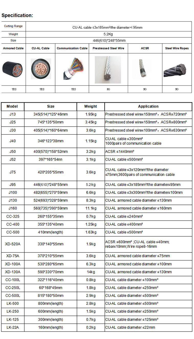 J95 Andre håndværktøjer til kobber- og aluminiumskabelskæring, manuel