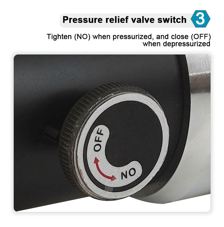 - Trykafspærringsventil Tænd (NO), når der er tryk, og sluk (OFF), når trykket frigives