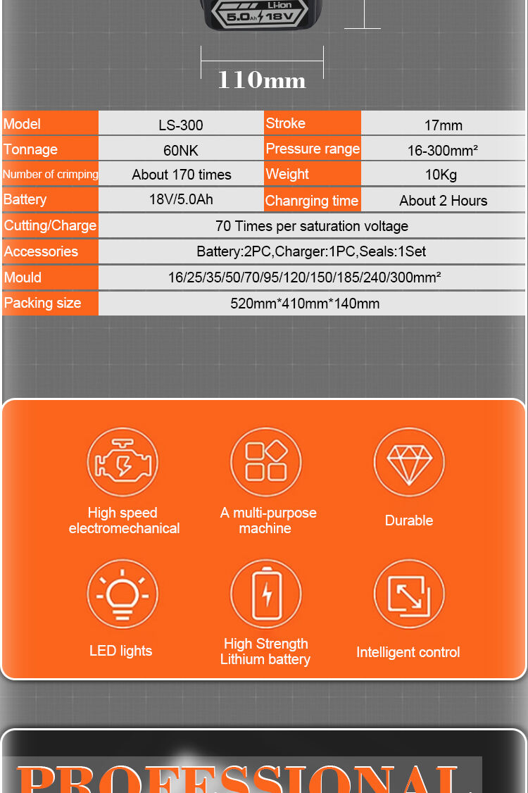 LS-300 6t 300mm2 Elektrisk batteridrevet kabel hydraulisk crimpværktøj