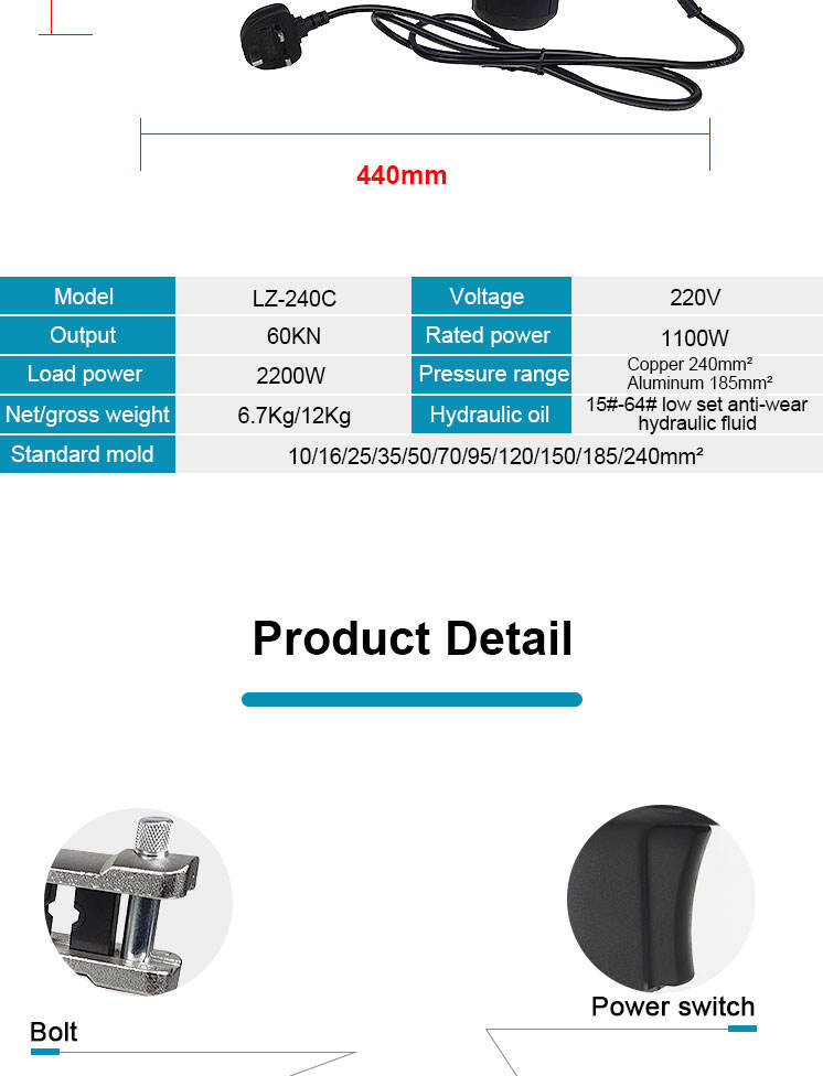 LZ-240C elektrisk kabelkøn-krimpt værktøj 240mm2 Krimpværktøj