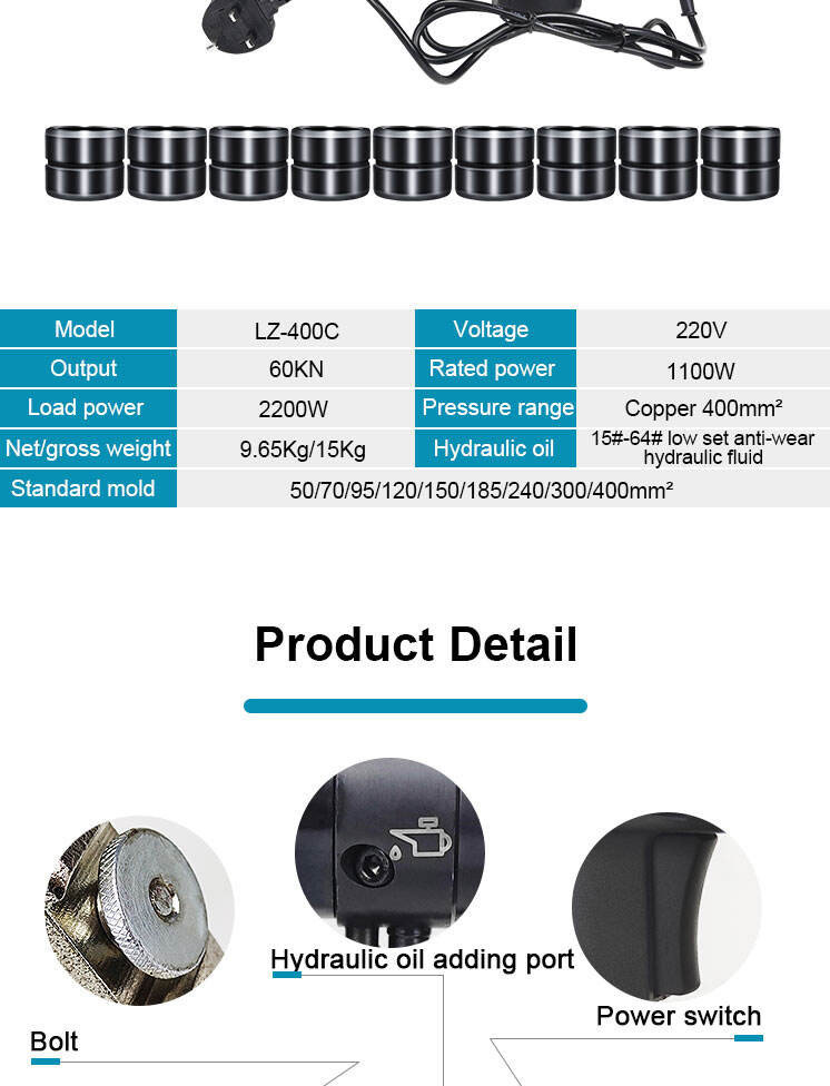 LZ-400C Hydraulisk kabelkappekrimper Elektrisk krimpværktøj til aluminium og kobber