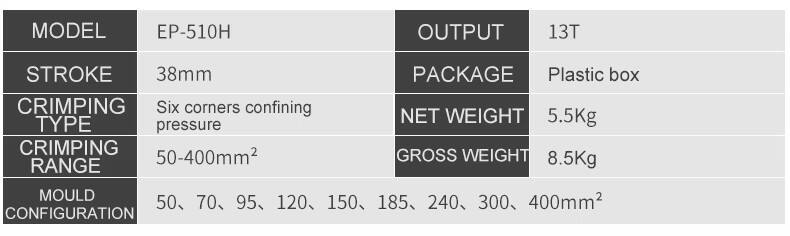 Manuelle hydrauliske værktøjer til at krimpning af ledningskabler og kabelmuffe EP-510H