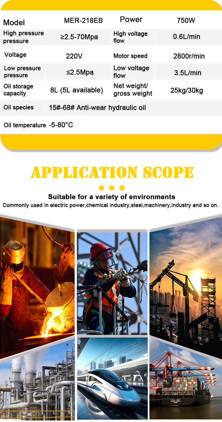 MER-218EB El-pumpefabrik 700 Bar Højtryks hydraulikpumpe 0,75 kW Bærbar bearbejdning Efterspændingsapplikationer