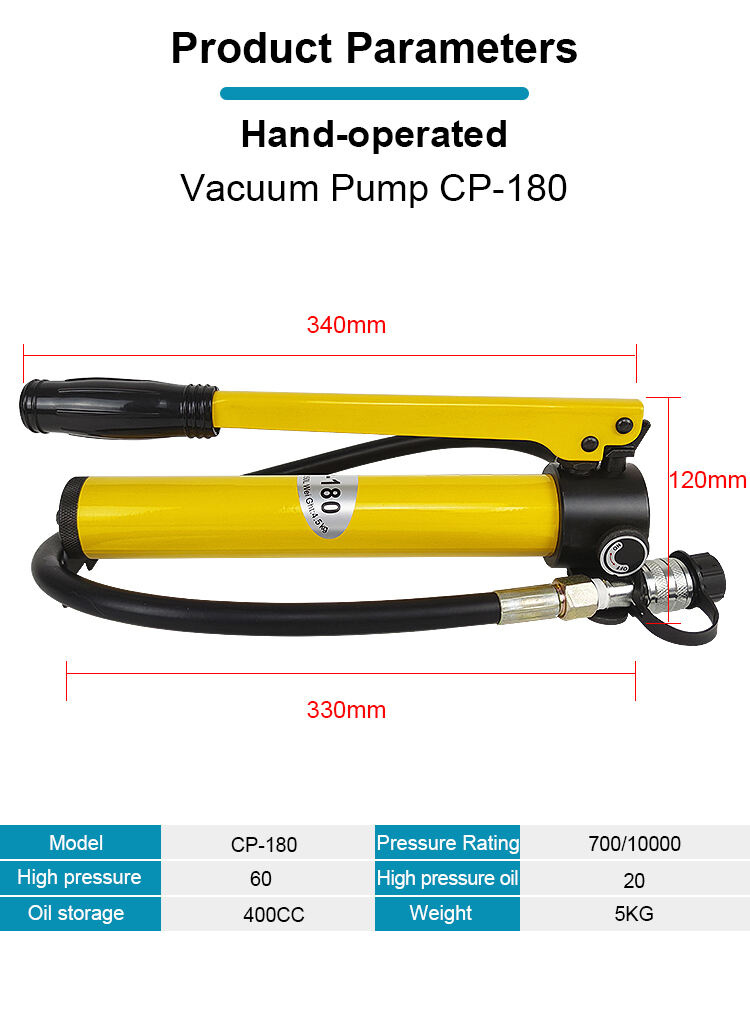 Bærbar CP-180 hydraulisk metal håndpumpe 700 bar højtryks oliepumpe til fødevare- og vandbehandling motorforsyning maskinbearbejdning