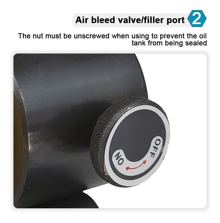 - Luftafluftningsventil/fyldningsport Møtrikken skal løsnes under brug for at forhindre olietanken i at blive tæt lukket