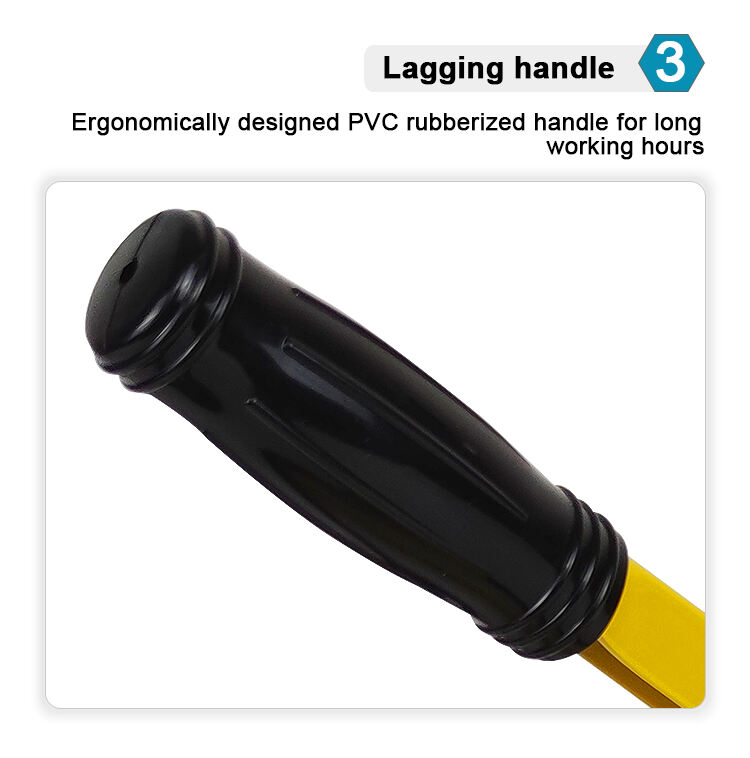 - Udadvendt håndtag Ergonomisk designet PVC-gummieret håndtag til lang arbejdstid