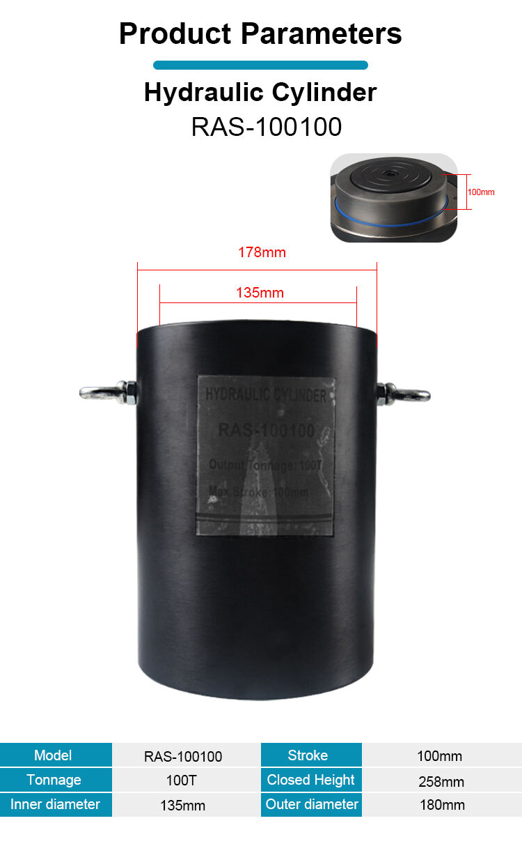 RAS-100100 100T Enkeltvirkende aluminiumshydraulikcylinder