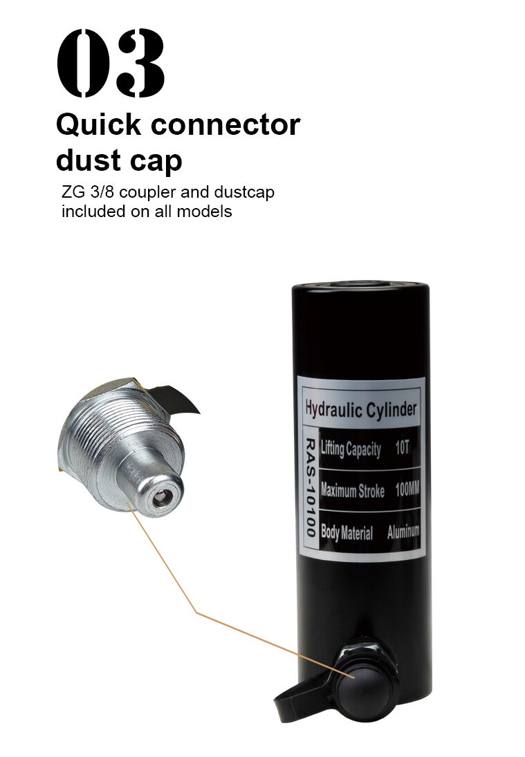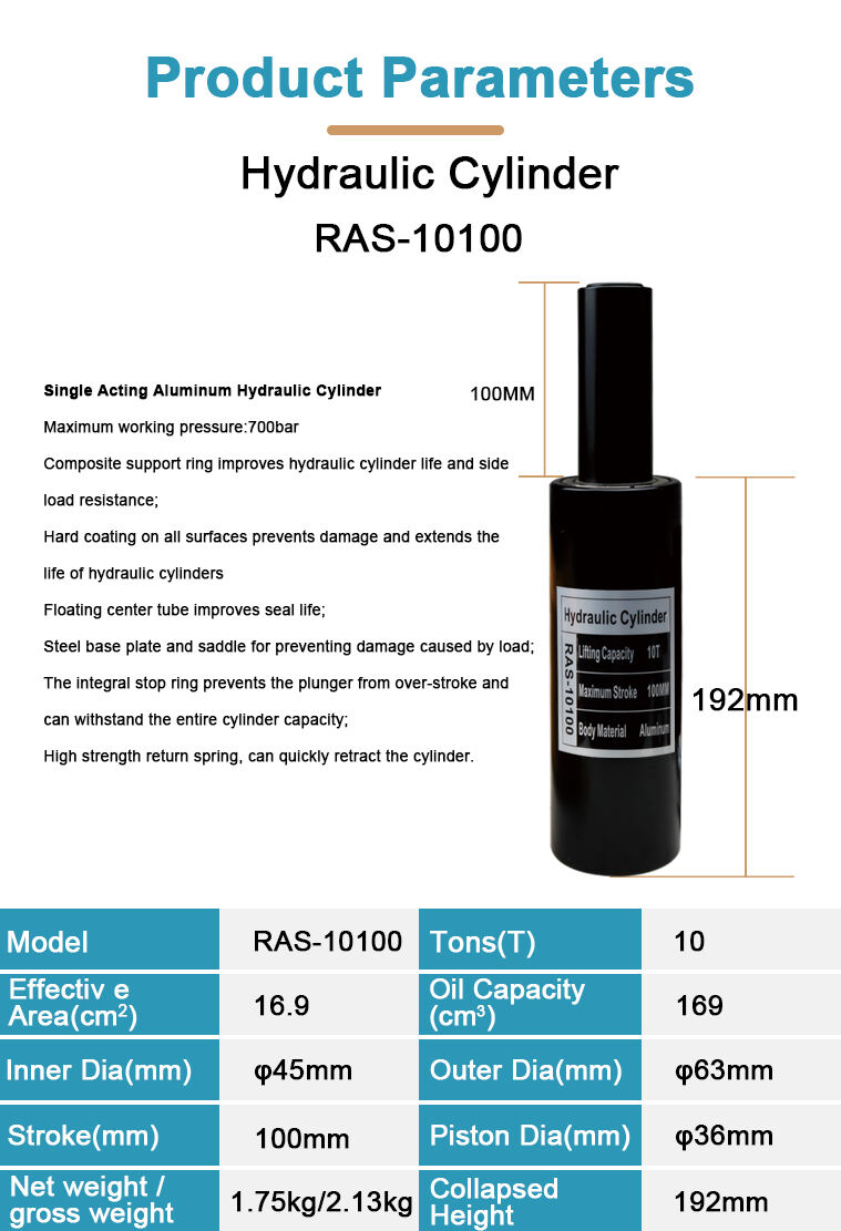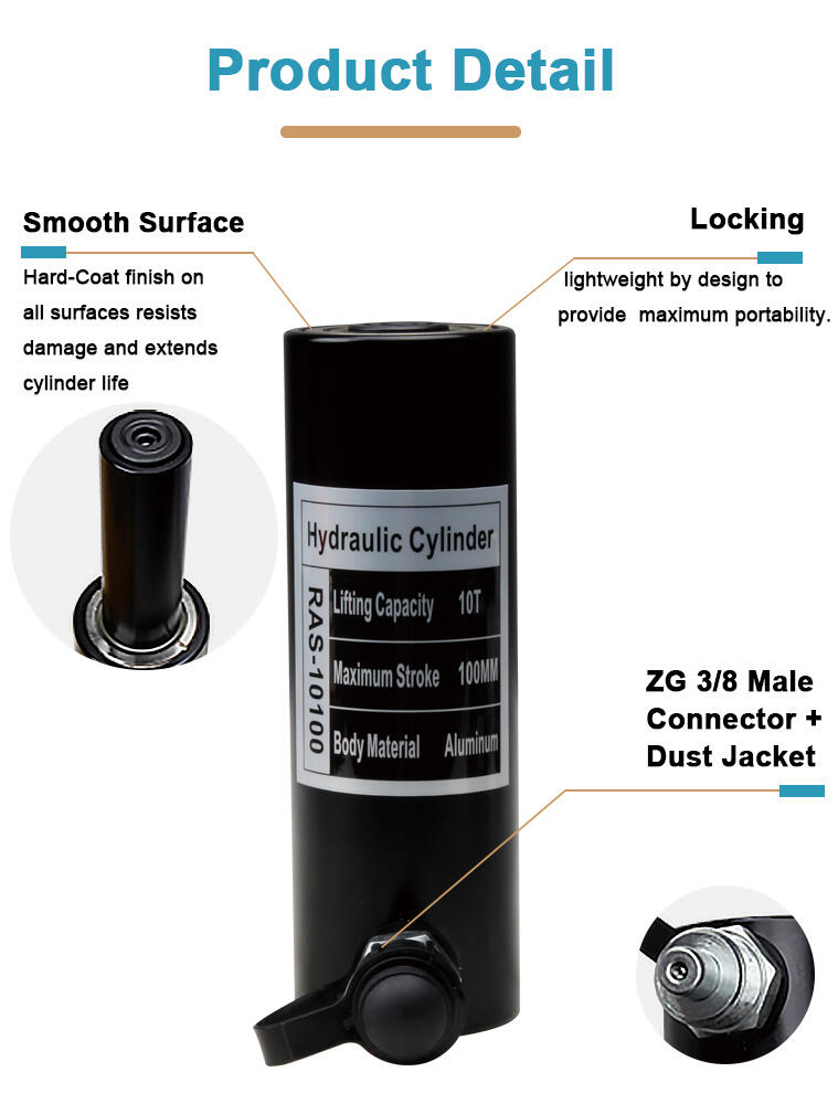 RAS-10100 Enkeltvirkende 10 Ton Aluminium Hydraulikjackecylinder