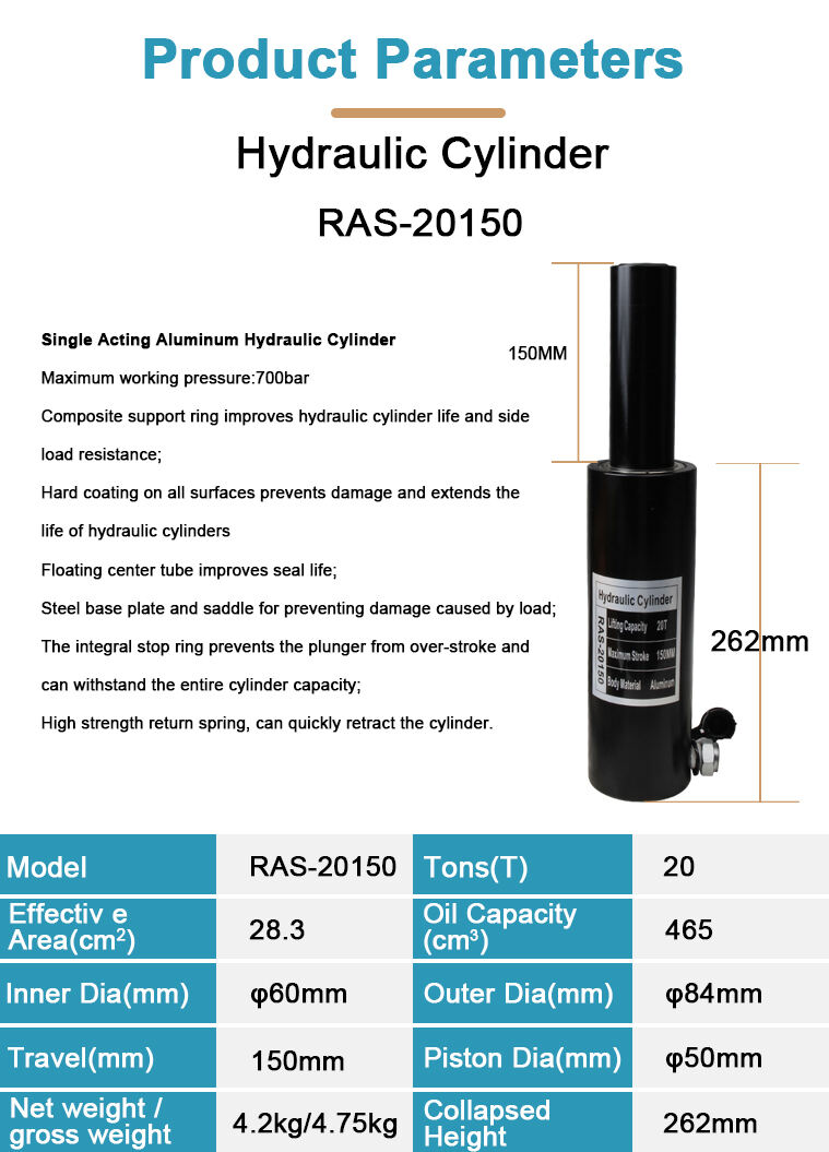 RAS-20150 700 bar fjederretur letvægts hydraulisk spændingscylinder