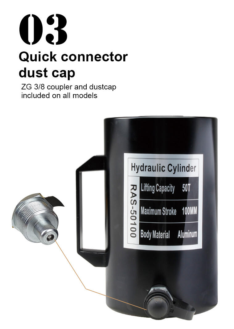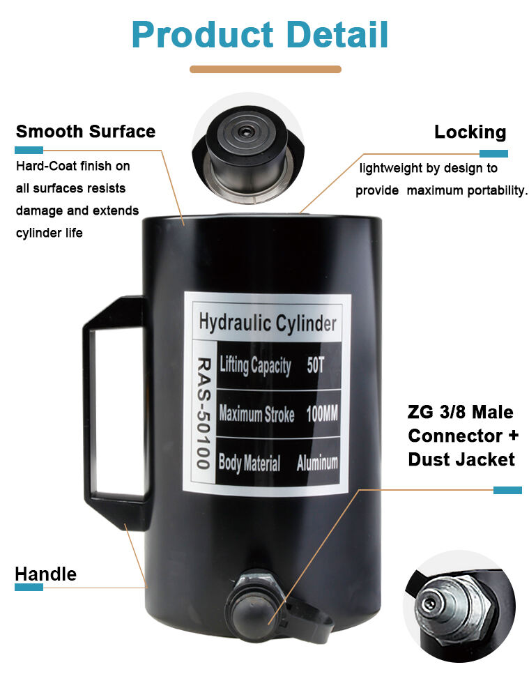 RAS-50100 Aluminium Hydraulikcylinder 50ton Enkeltvirkende Jack Cylinder