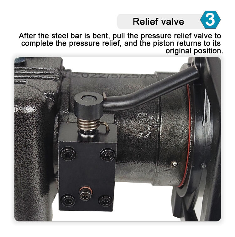- Trykafbødningsventil Når armeringen er bøjet, træk trykafbødningsventilen for at udføre trykudligning, og stemlen vender tilbage til sin oprindelige position