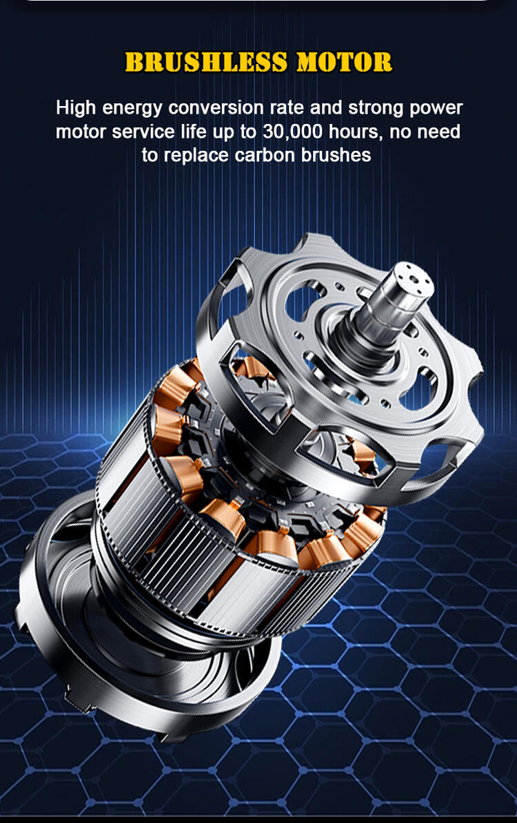 - BØRSTELØS MOTOR Høj energiomdanningsrate og kraftfuld motor med en levetid på op til 30.000 timer, ingen behov for at udskifte kulbørster