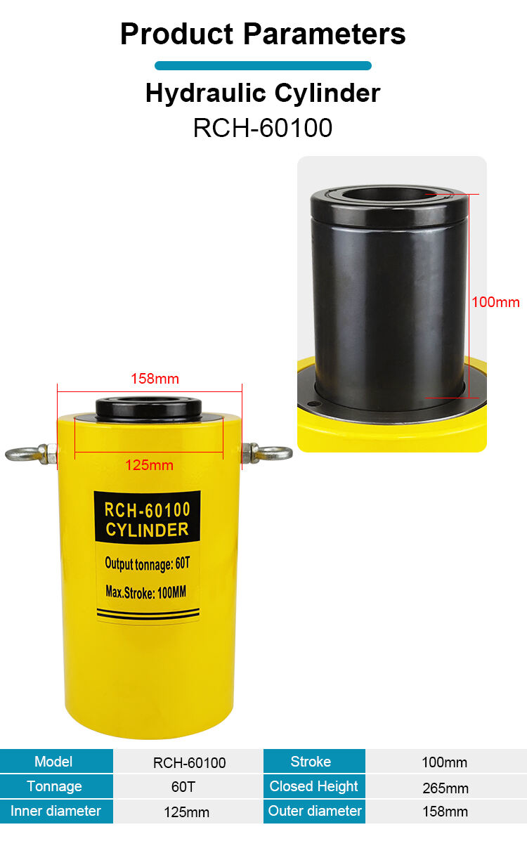 RCH-60100 60 Ton hydrauliske hule tommer cylindre